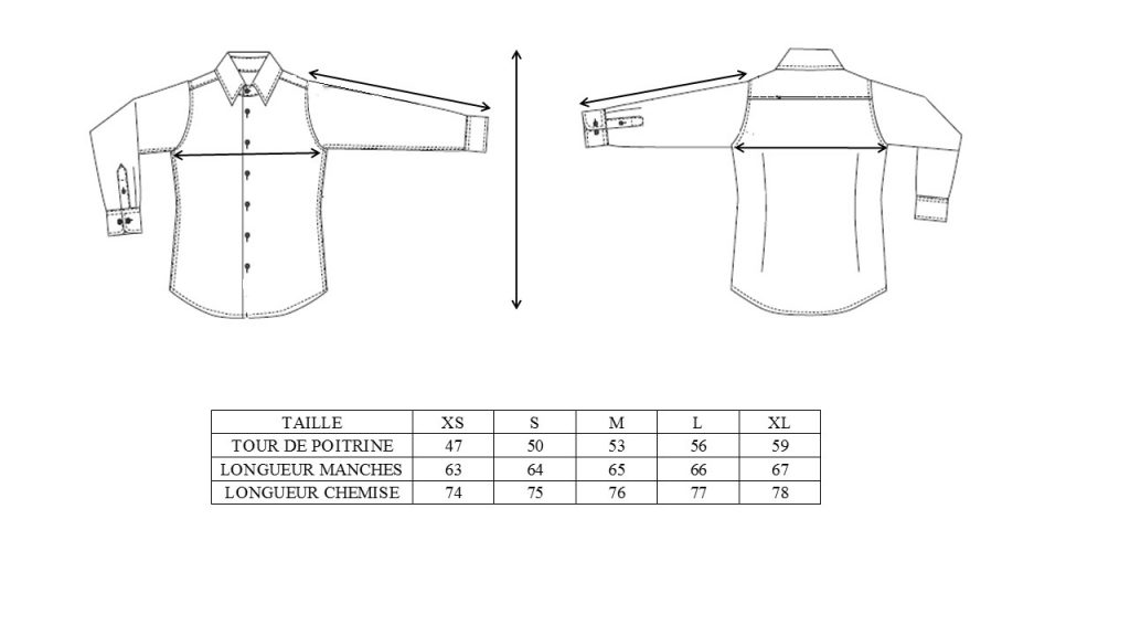 Mais quelle chemise choisir ? Mesurez-vous, le guide de taille est ici ! Les mesures ont été prises en cm.