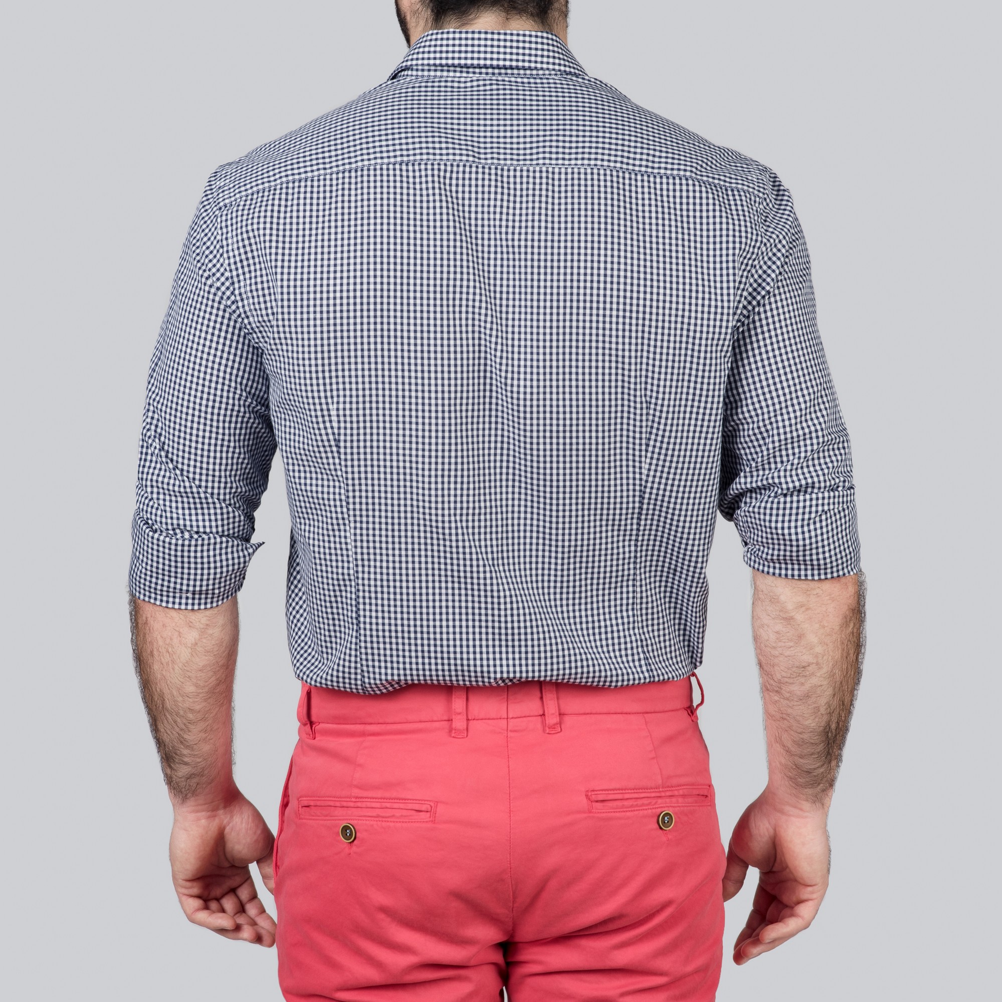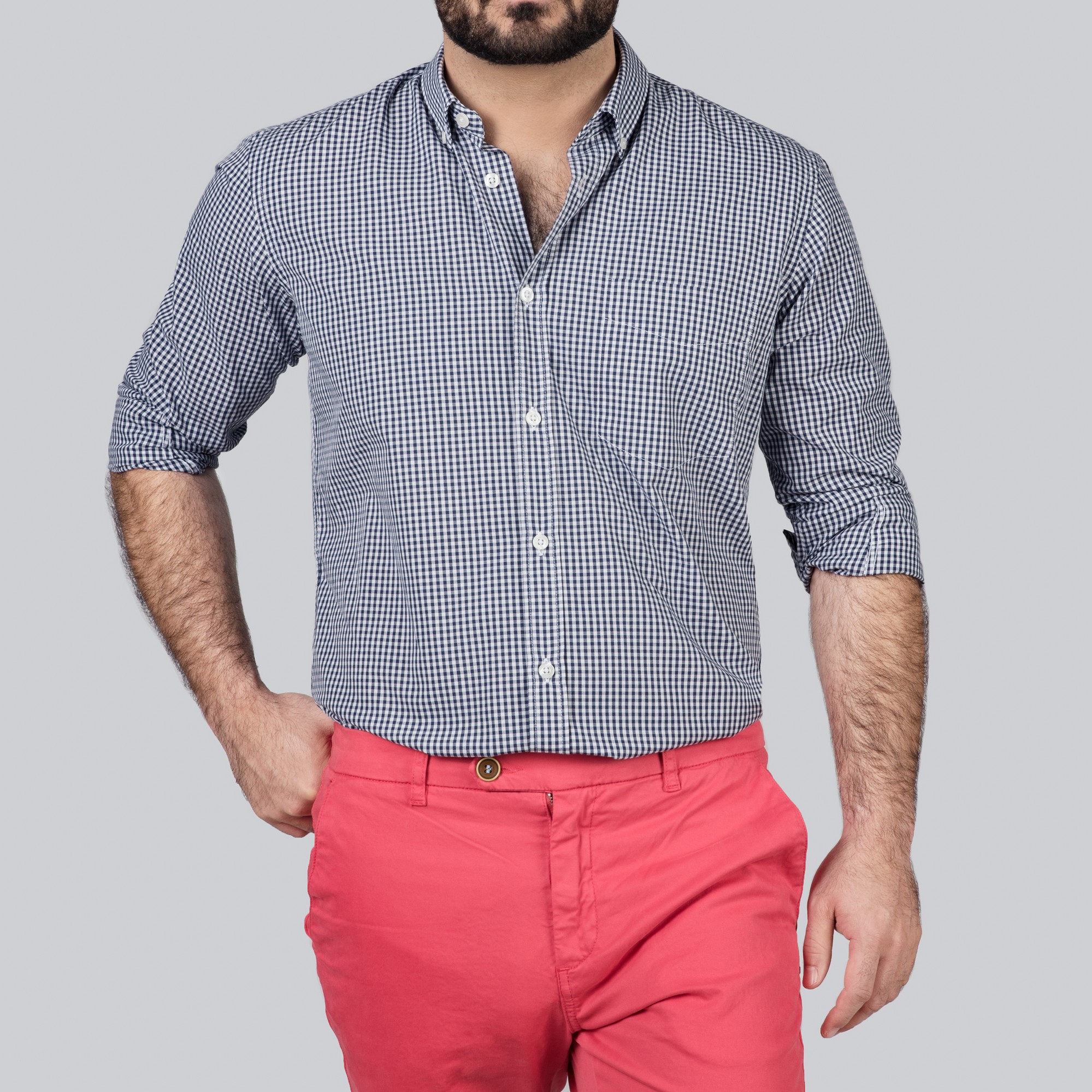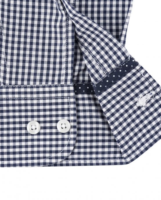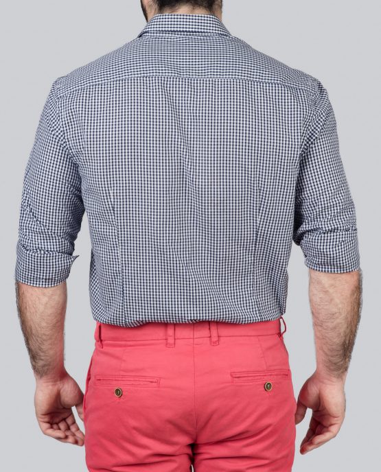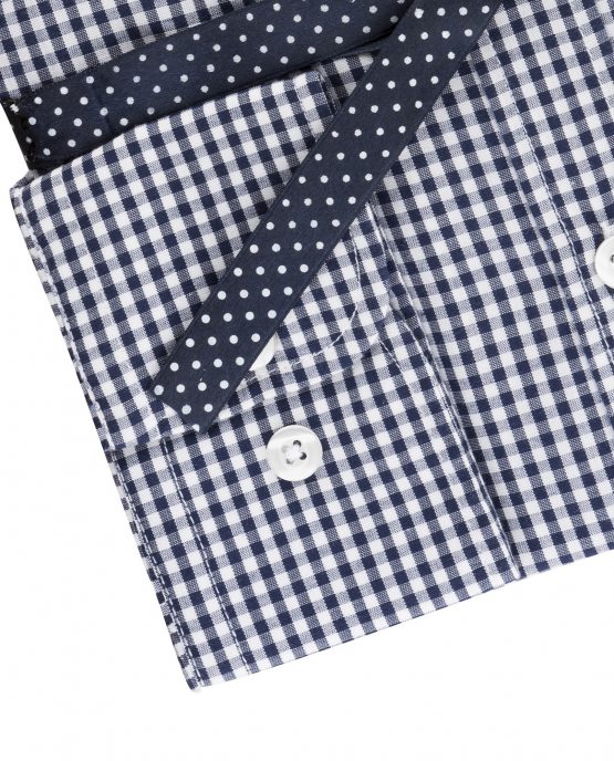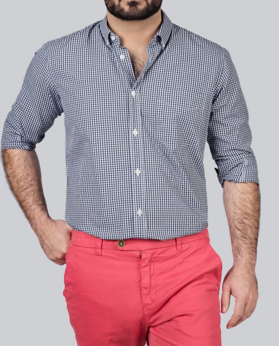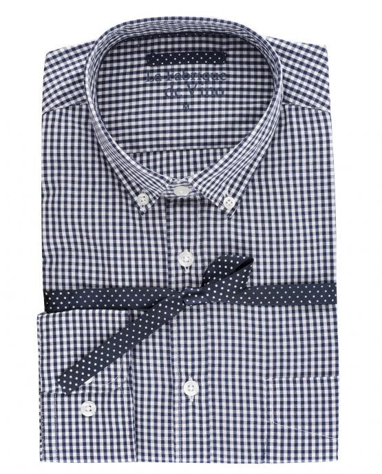 Une chemise à petits carreaux col pointes boutonnées en 100% coton comme la plupart de nos chemises. Elle e été lavée pour faire en sorte que son toucher soit fluide.