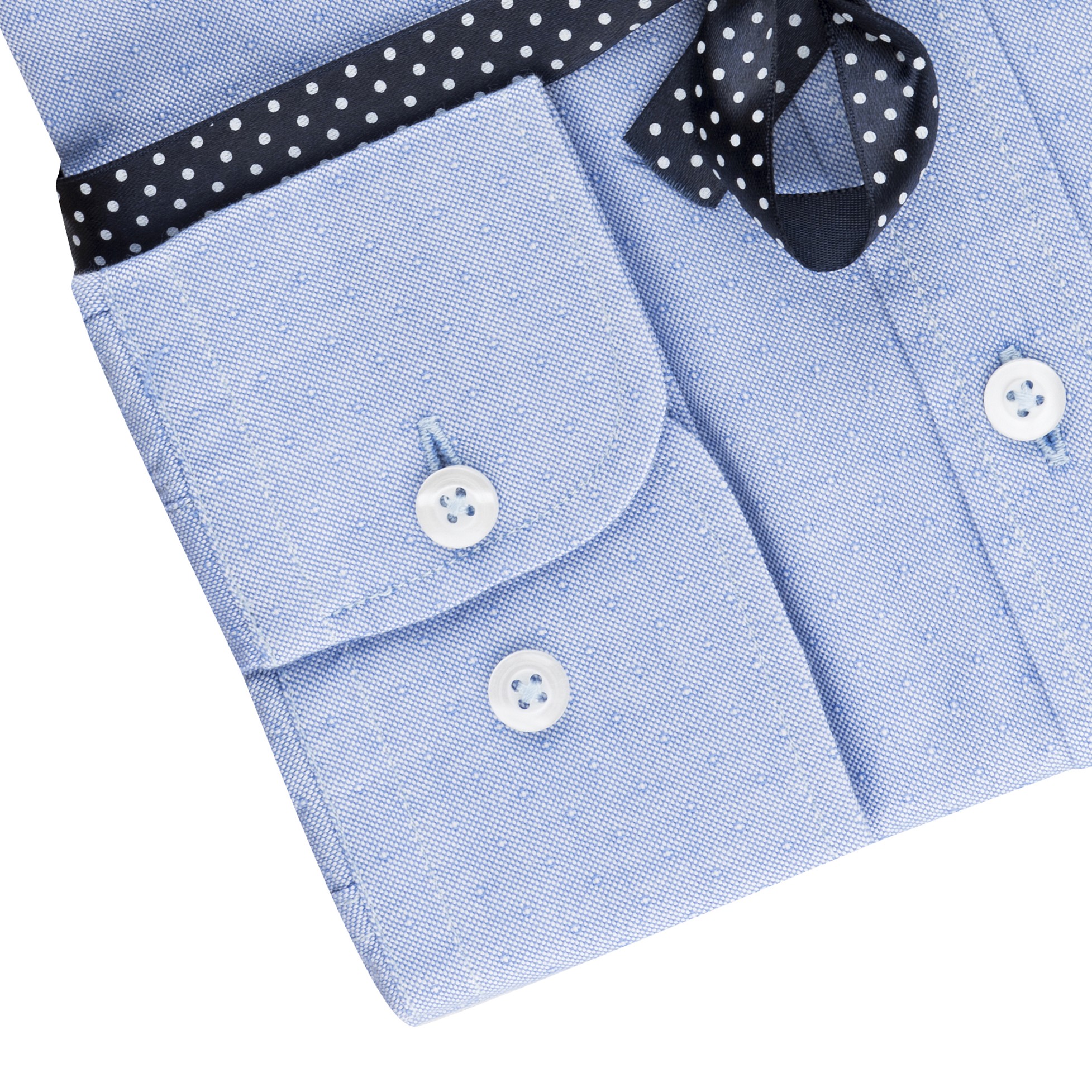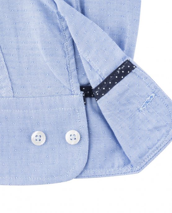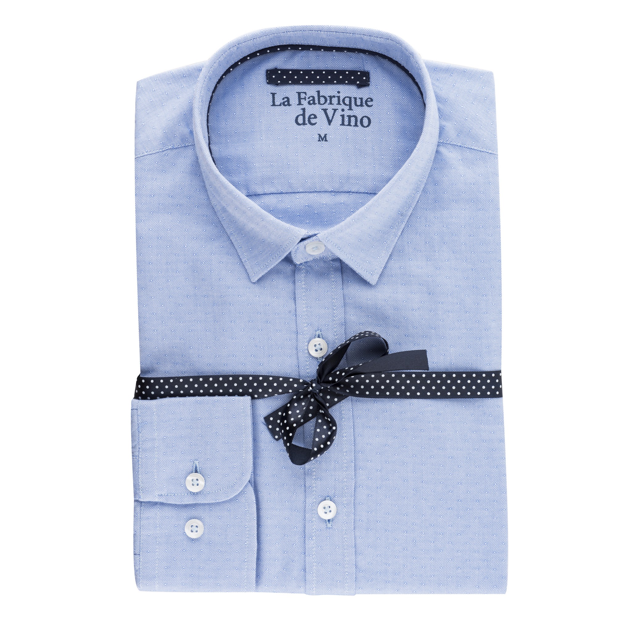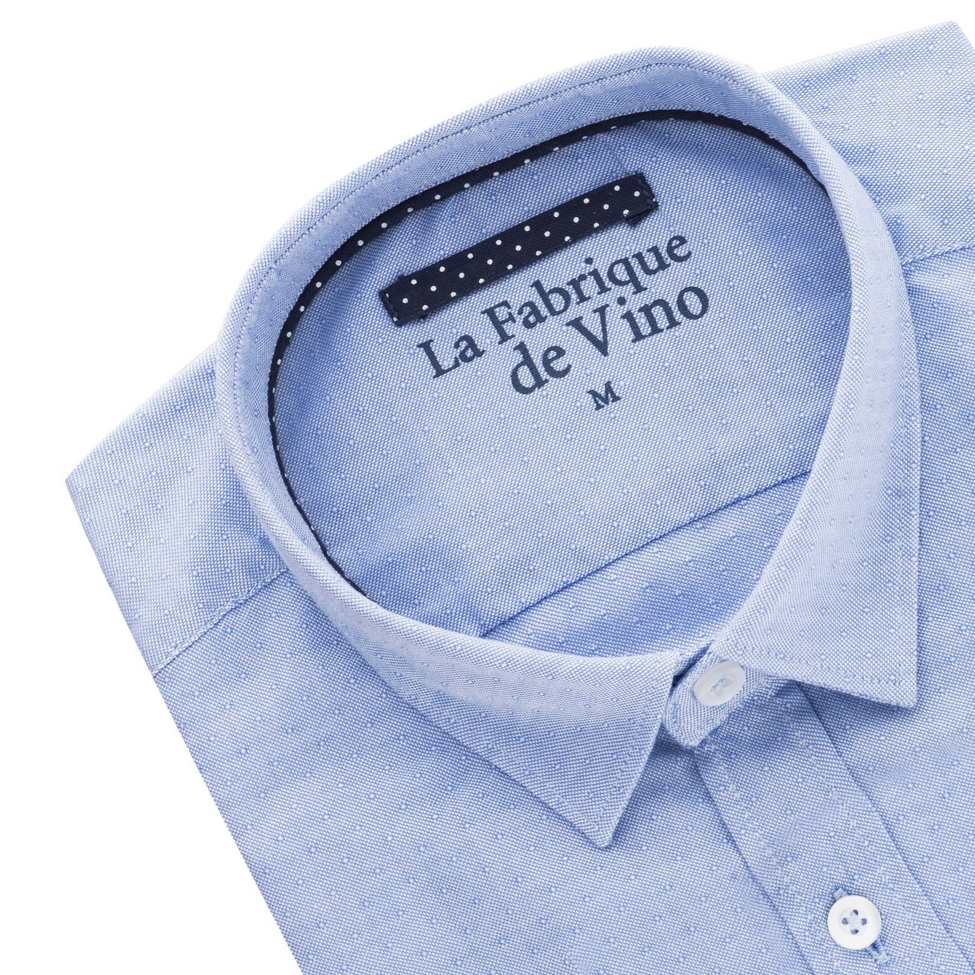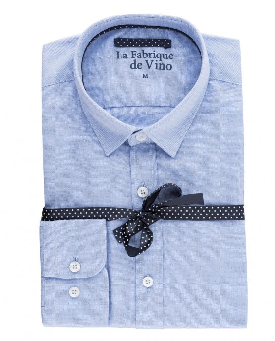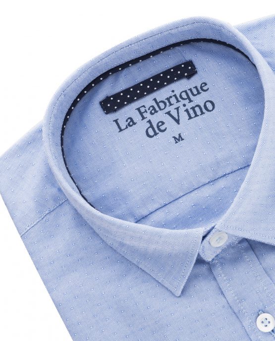 Voilà une chemise bleu ciel à motifs cousus col souple en 100% coton. Et lavée pour une meilleure fluidité.