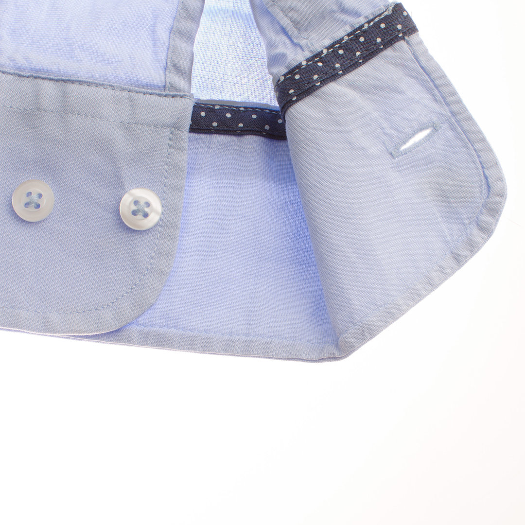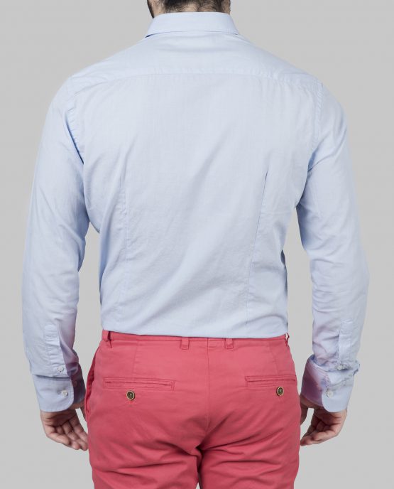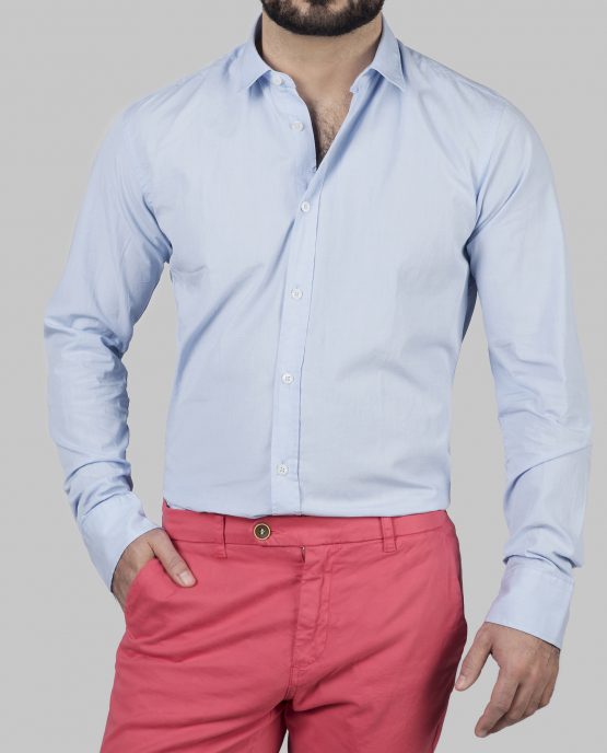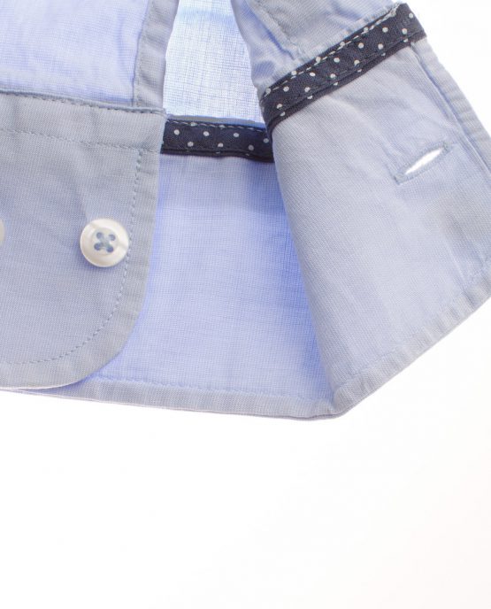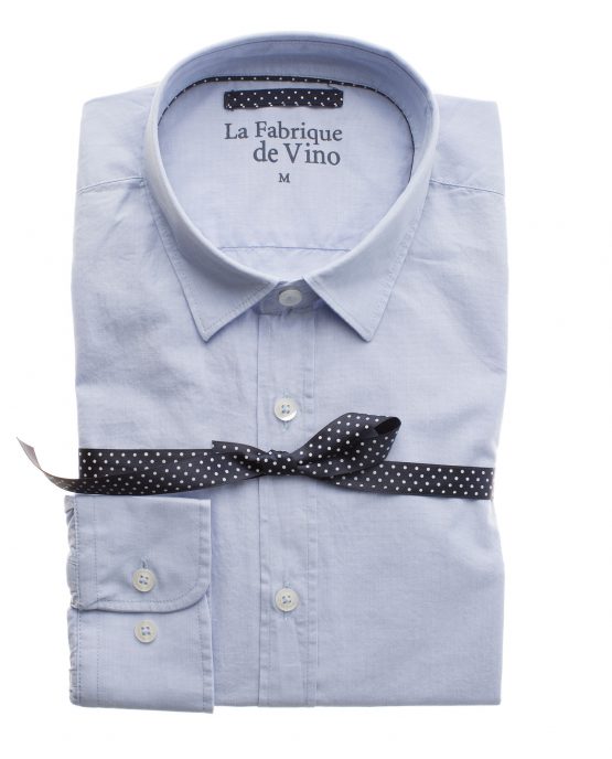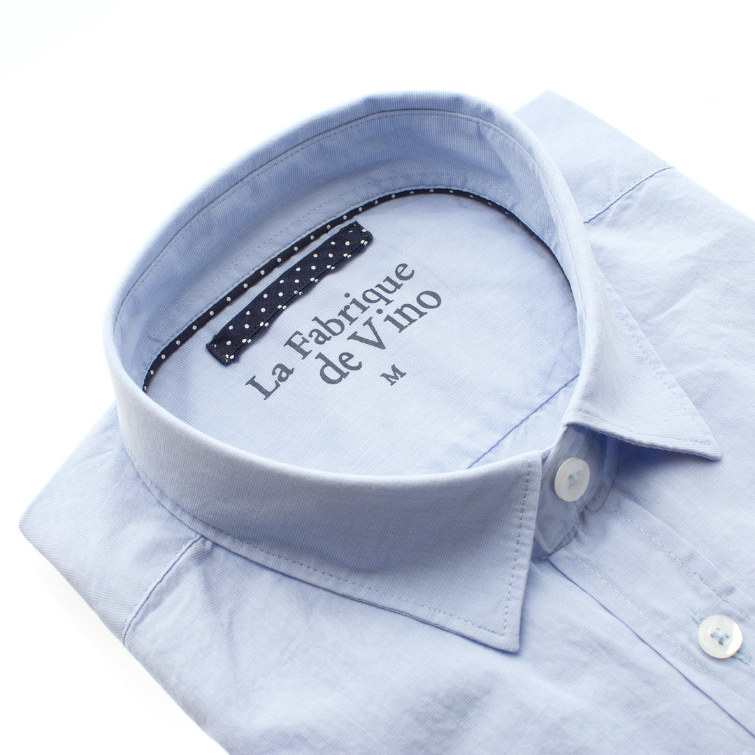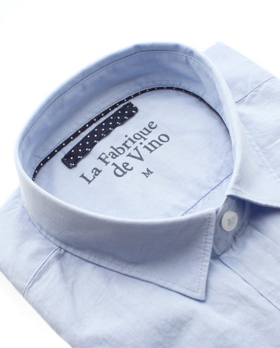Une chemise fil à fil bleu ciel col souple dont le tissus est en 100% coton. Il est léger et permet de porter cette chemise même en été.