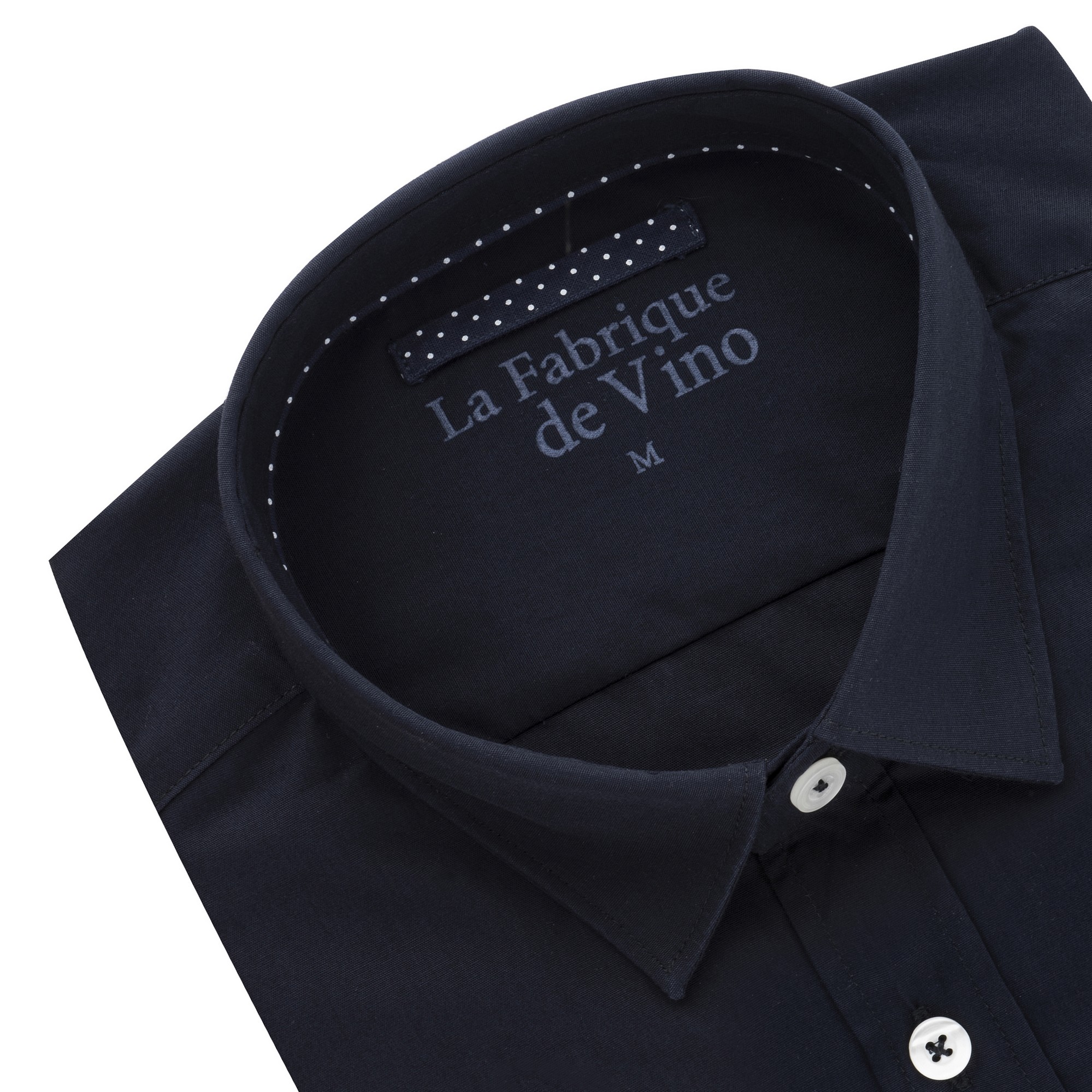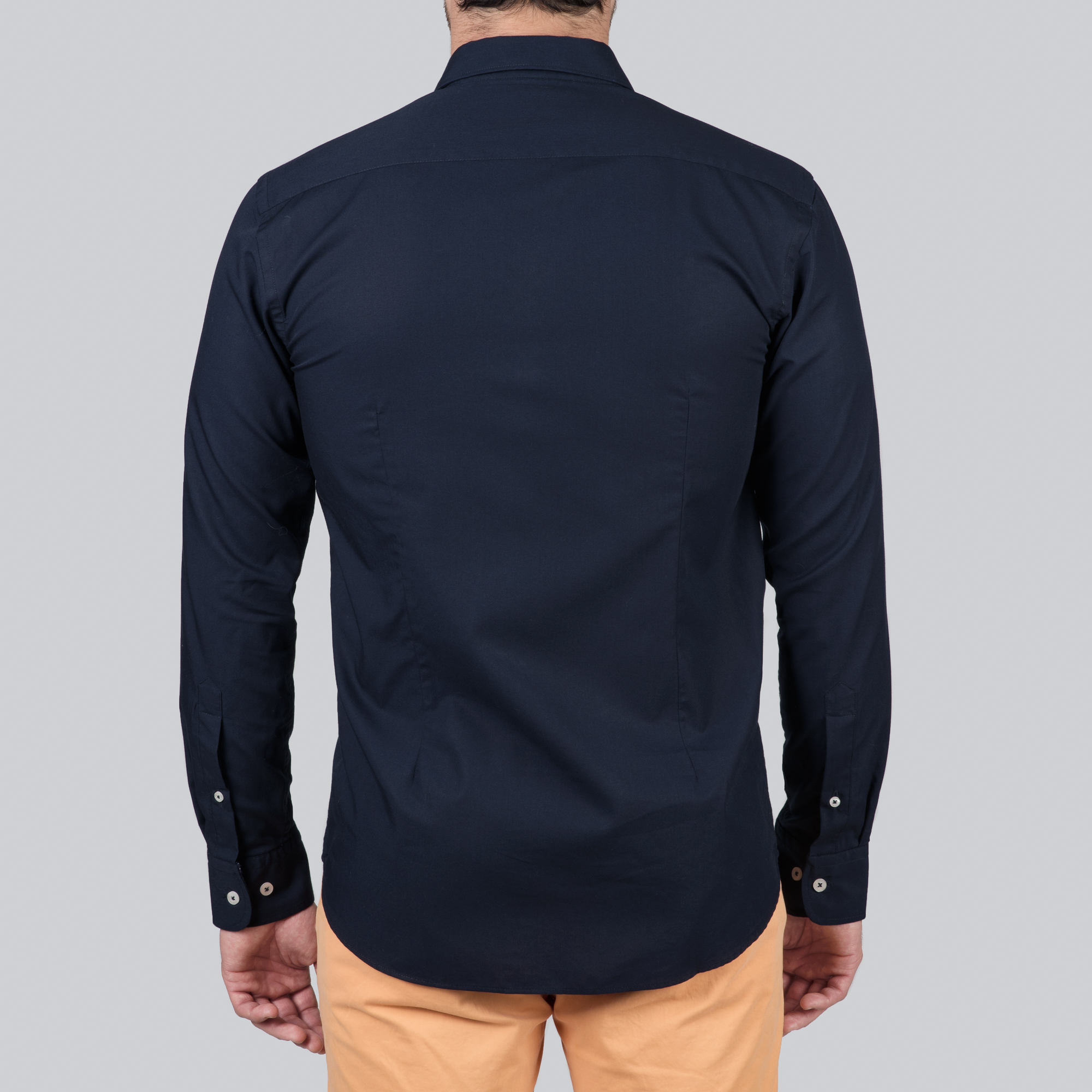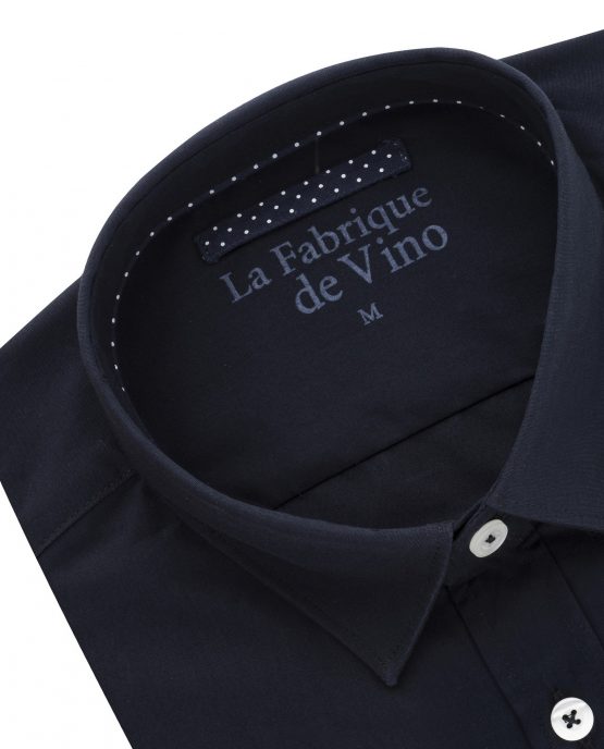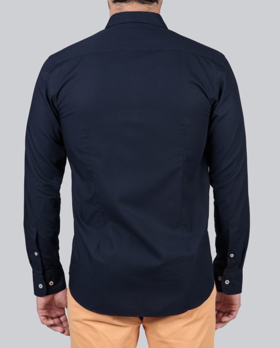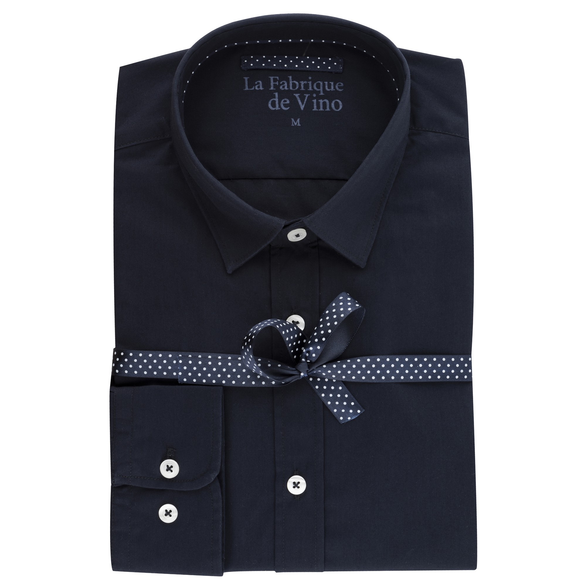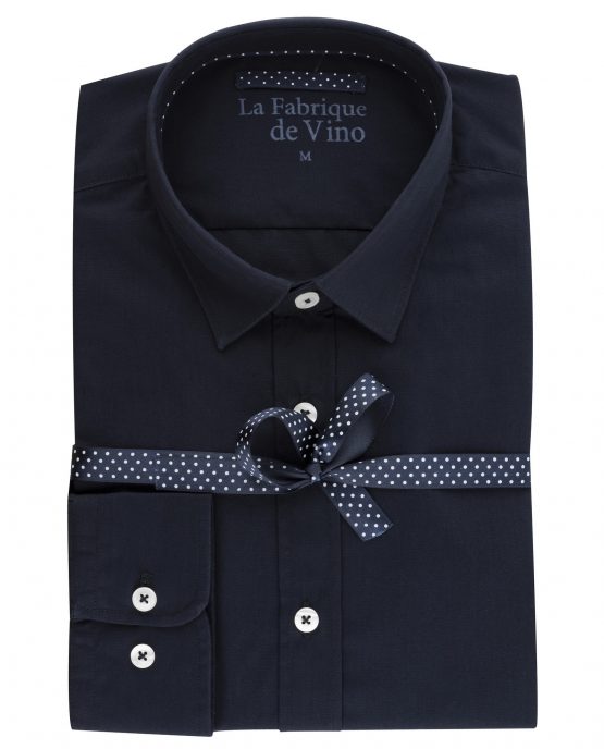 Une chemise marine en popeline col souple en 100% coton. Et lavée à la pierre pour plus de confort et un col souple évidemment.
