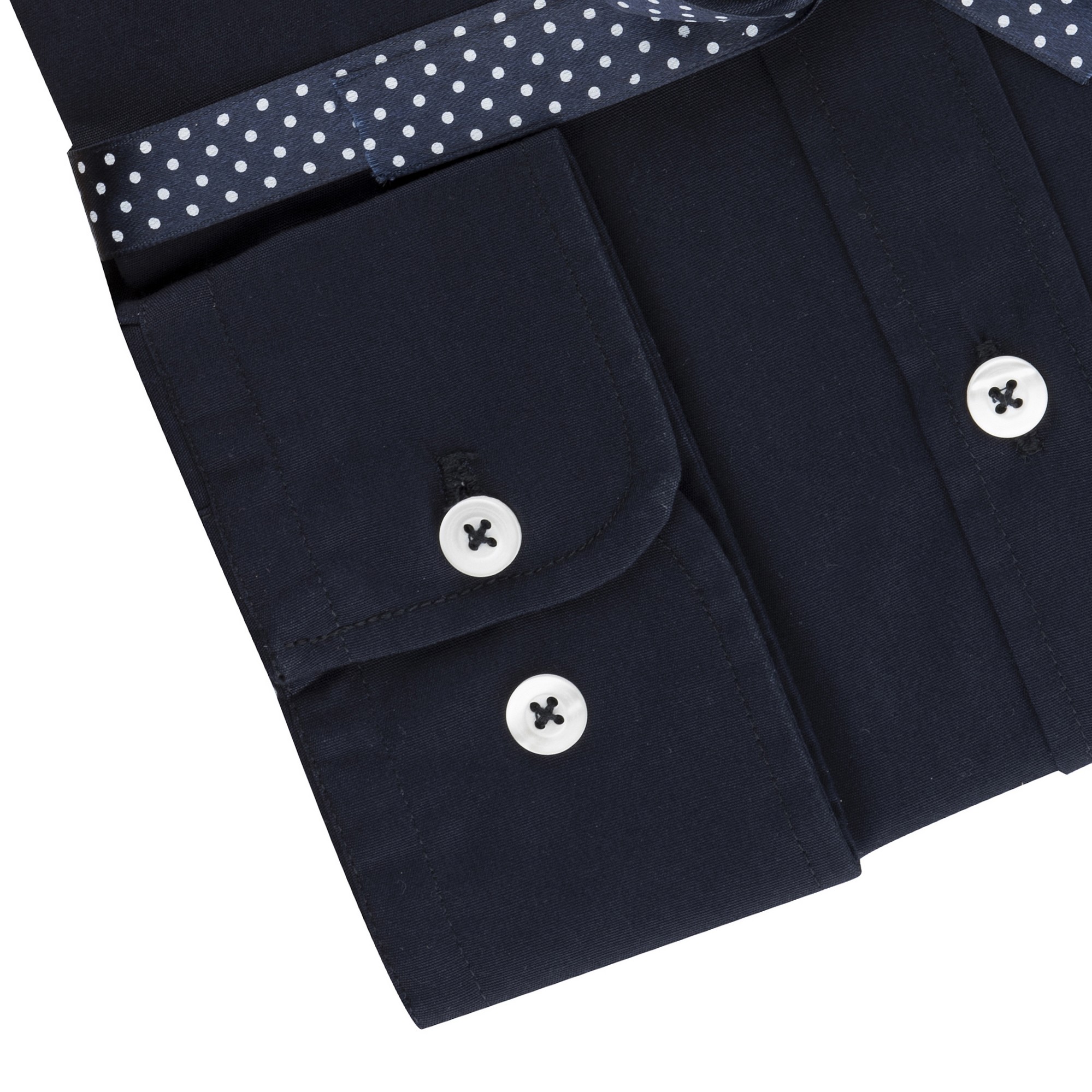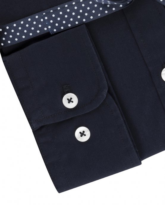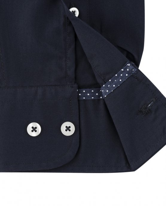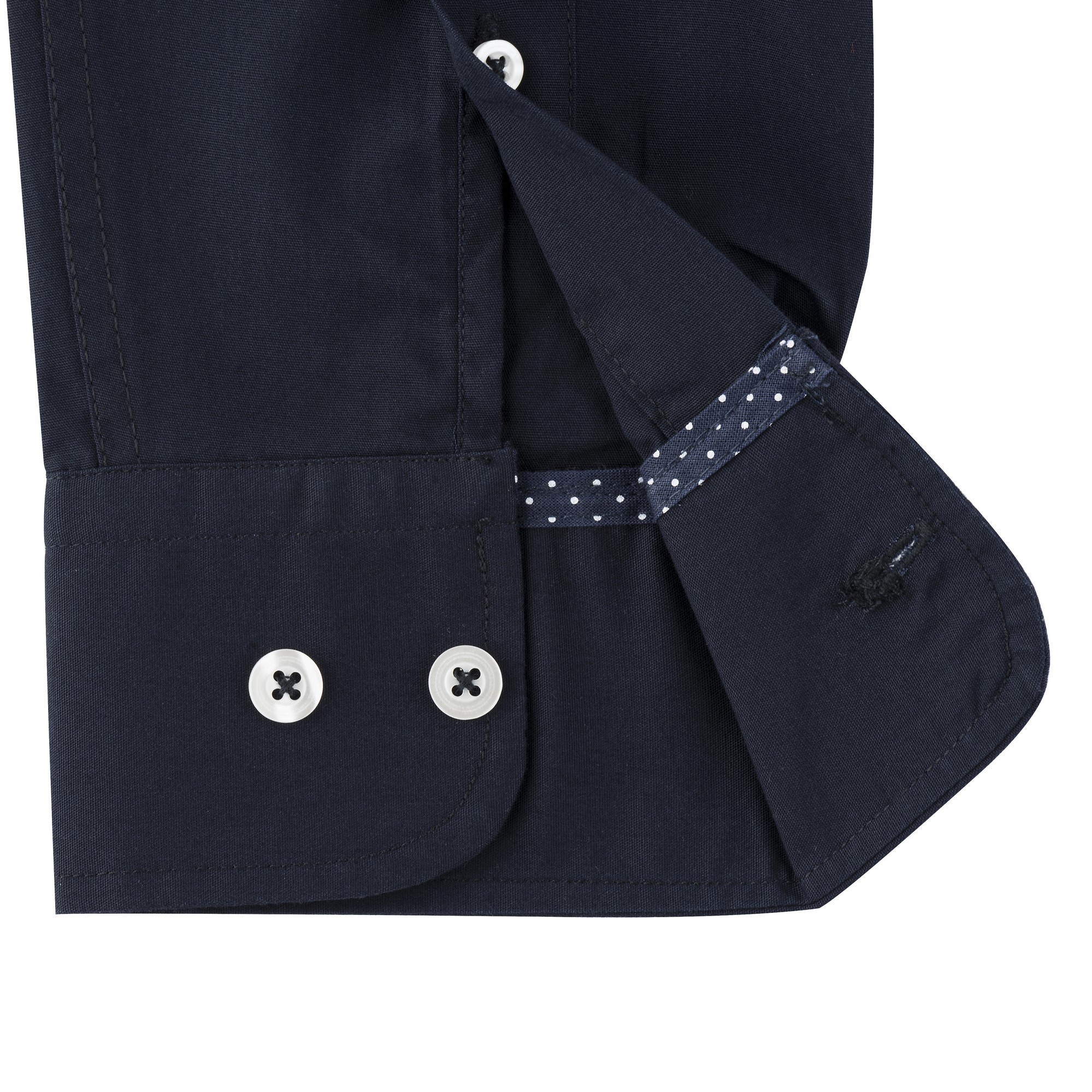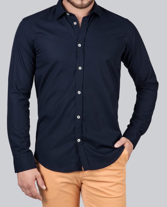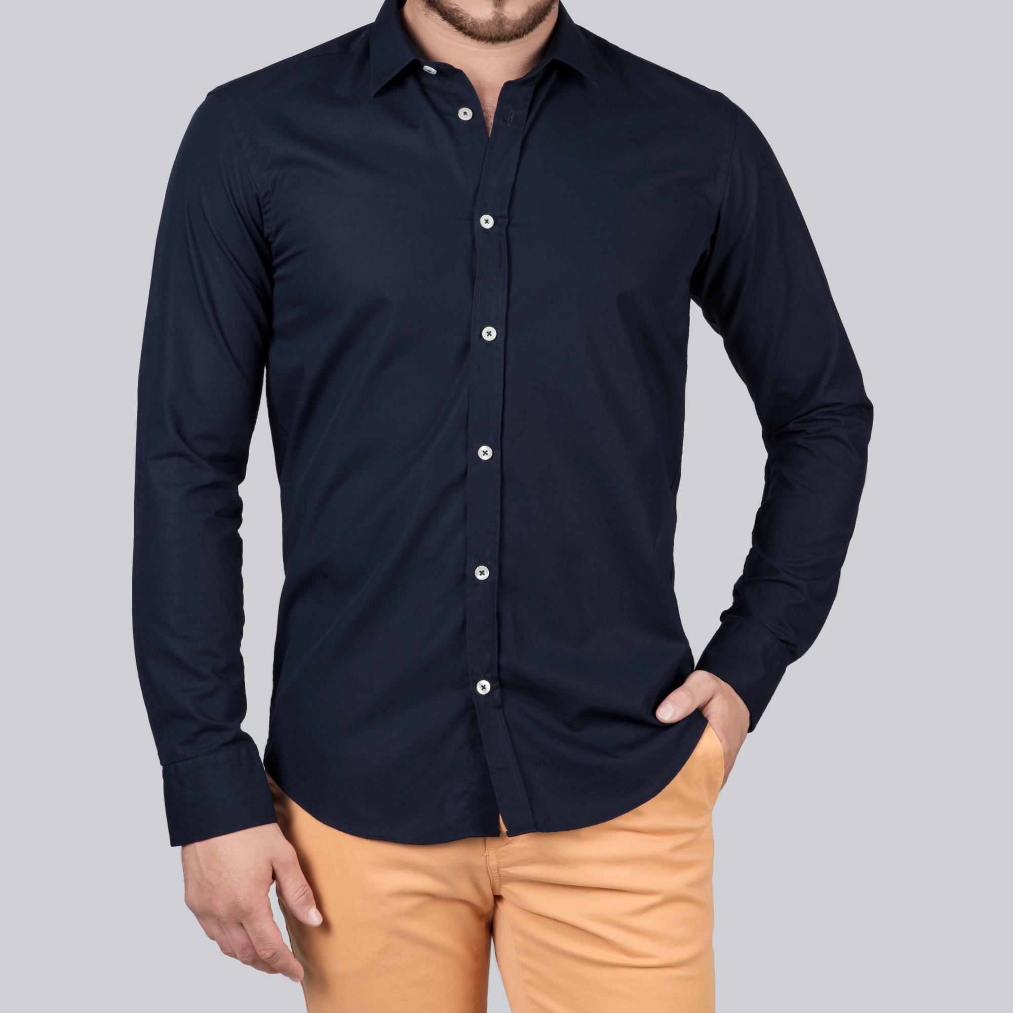 Une chemise marine en popeline col souple en 100% coton. Et lavée à la pierre pour plus de confort et un col souple évidemment.