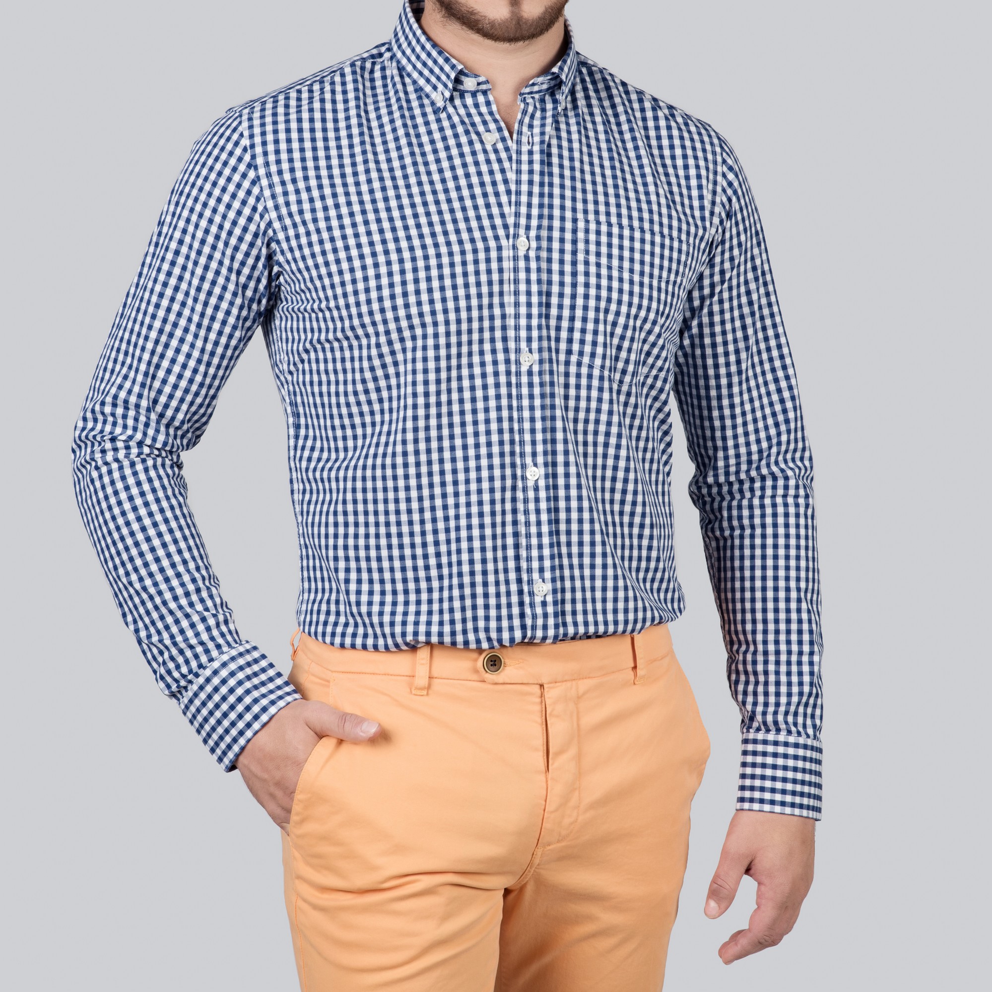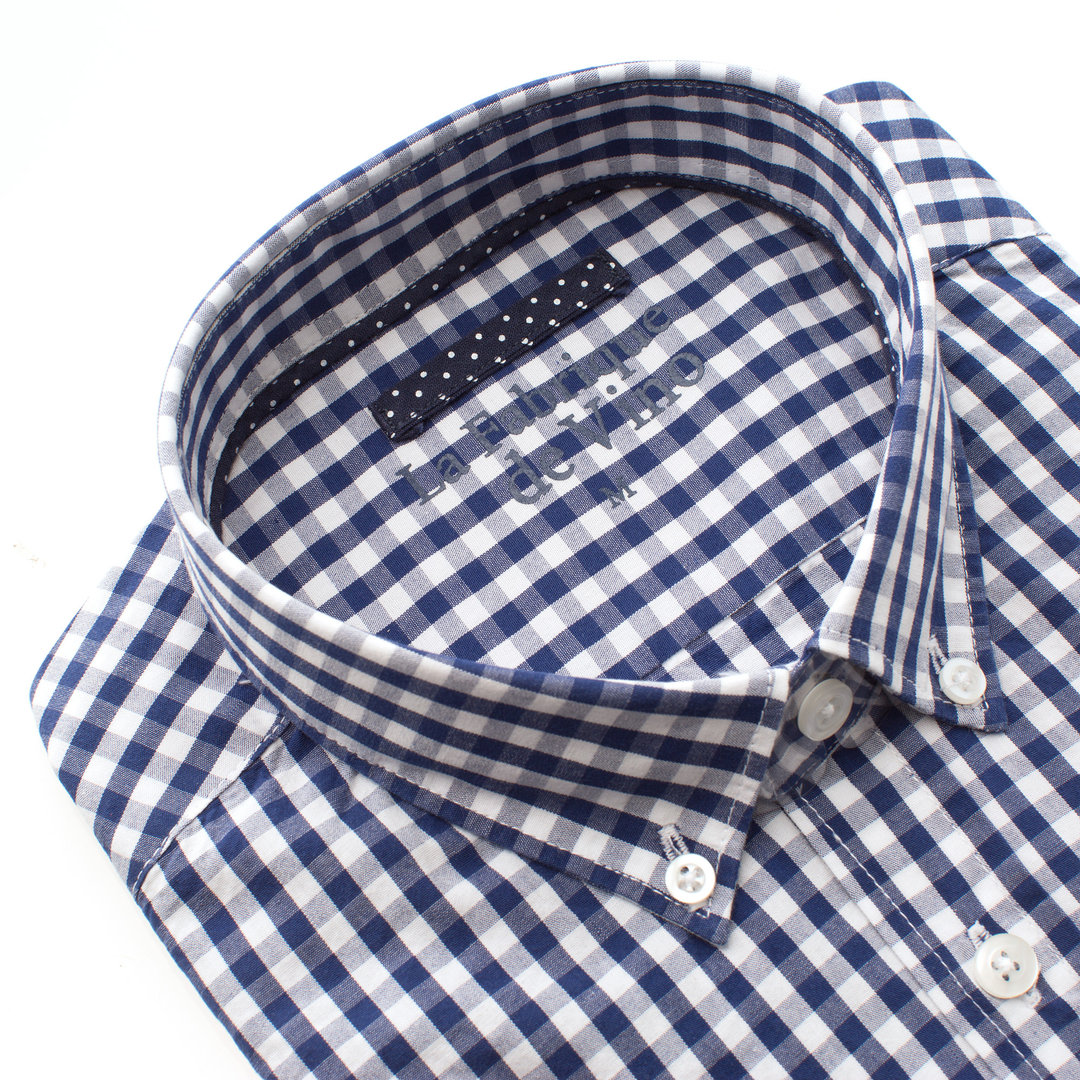 Une chemise vichy col à pointes boutonnées en 100% coton comme la plupart de nos chemises. Elle a été lavée pour faire en sorte que son toucher soit fluide.