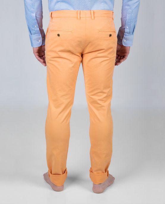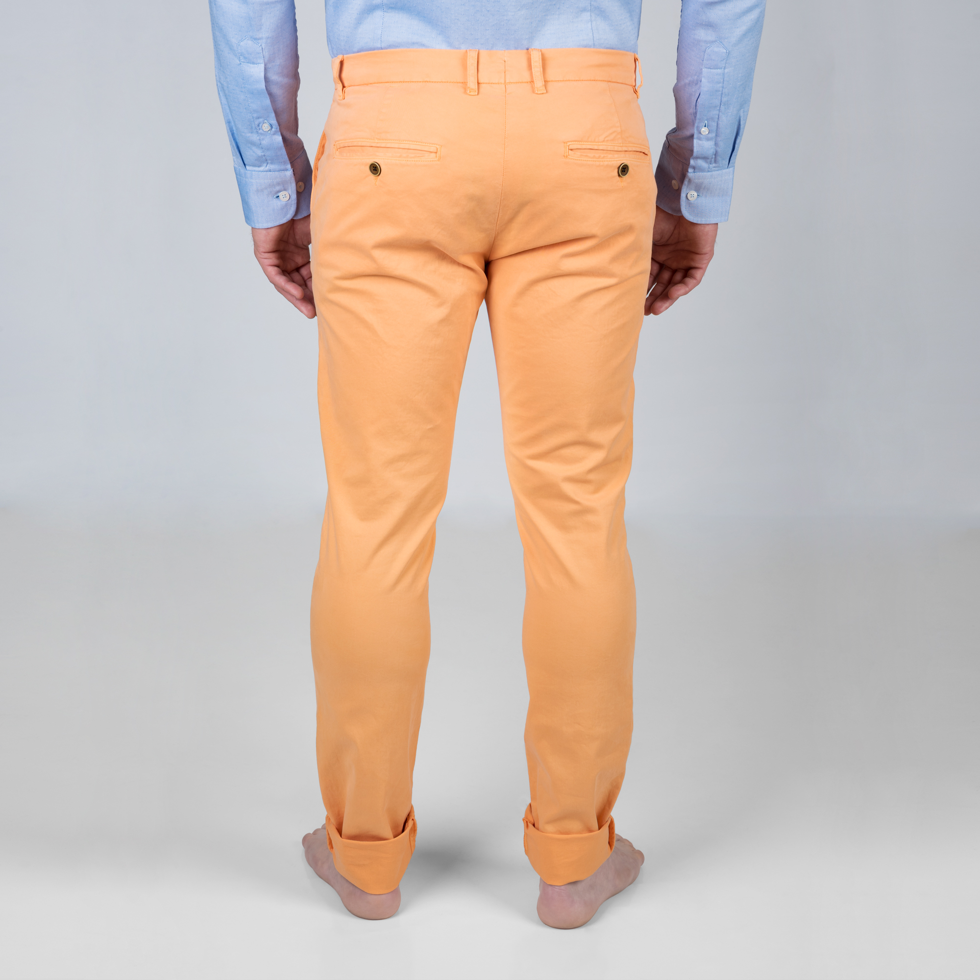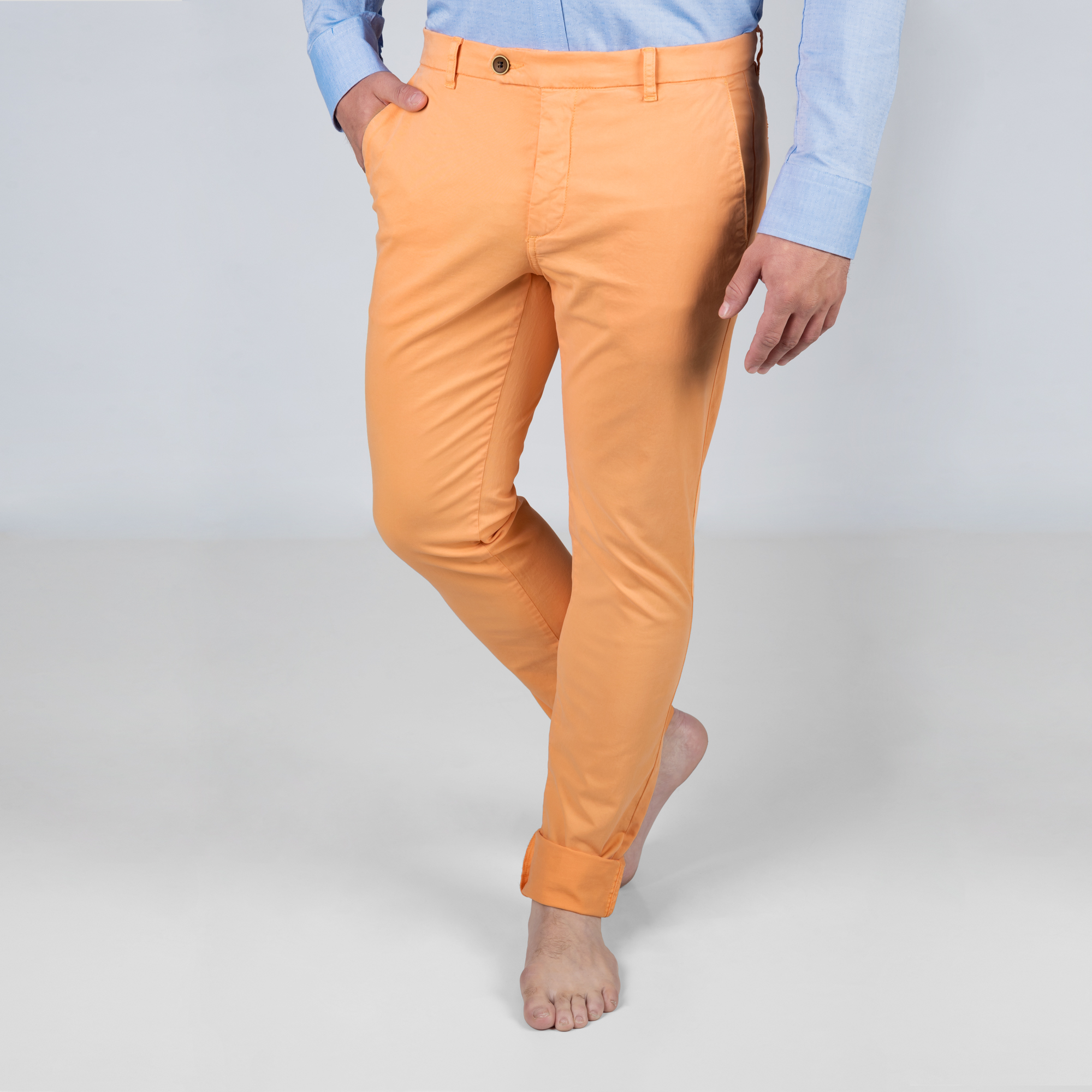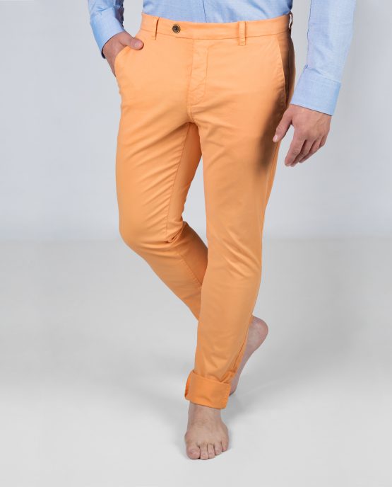 Un pantalon abricot c’est plus que bienvenu pour compléter une chemise bleu. Et les couleurs vives sont excellentes pour la santé !