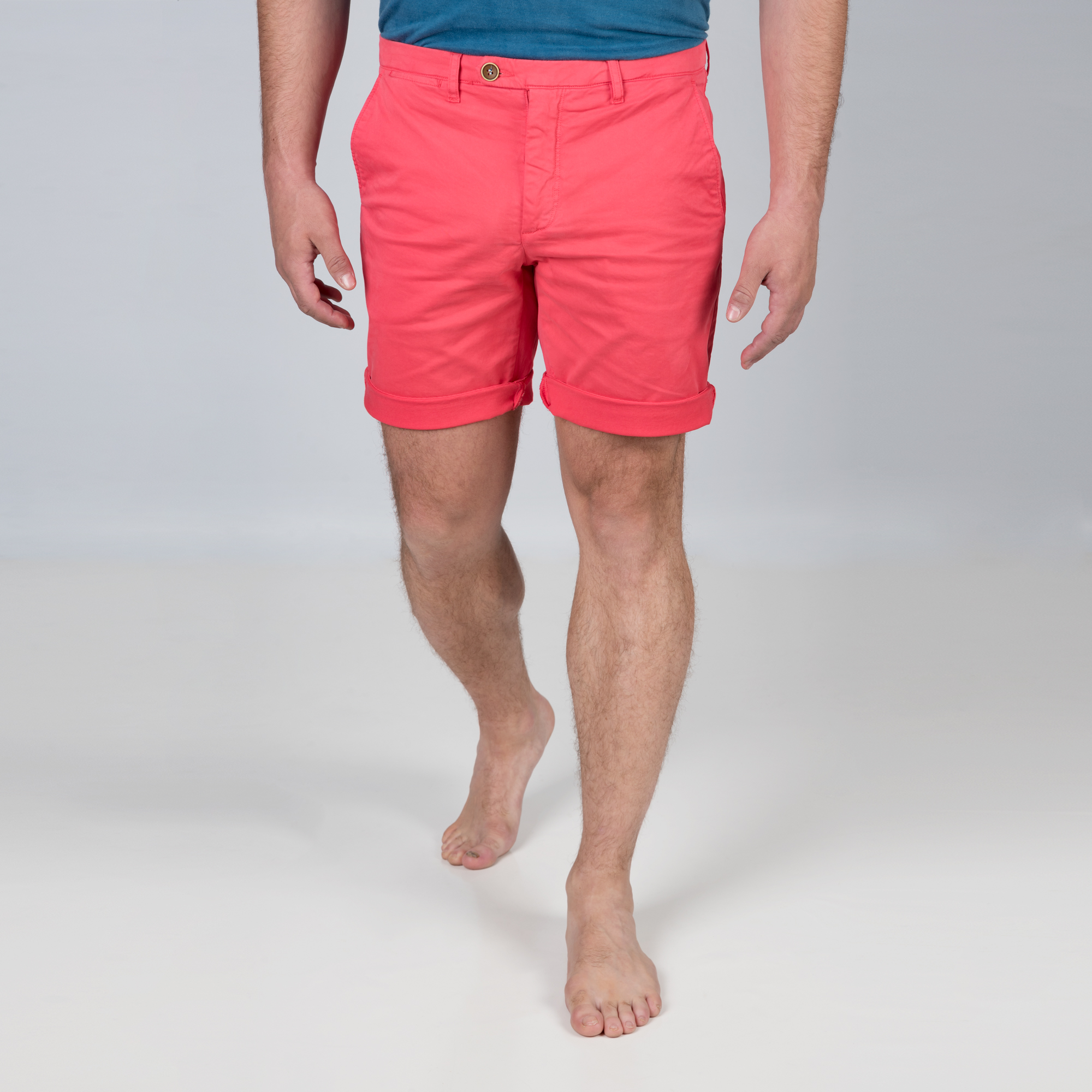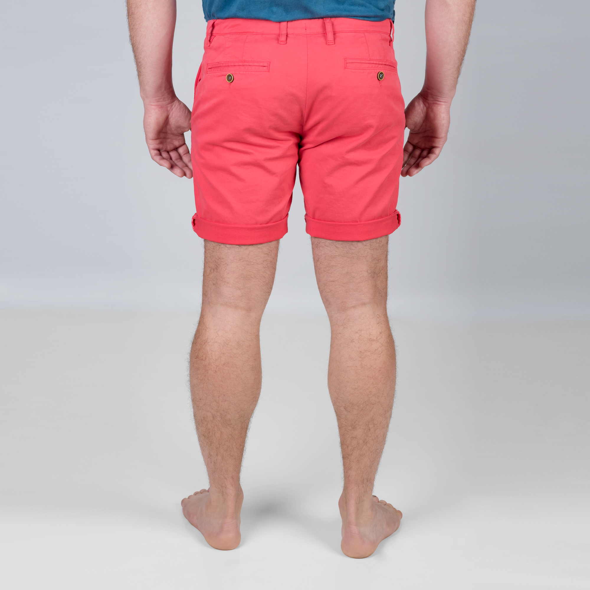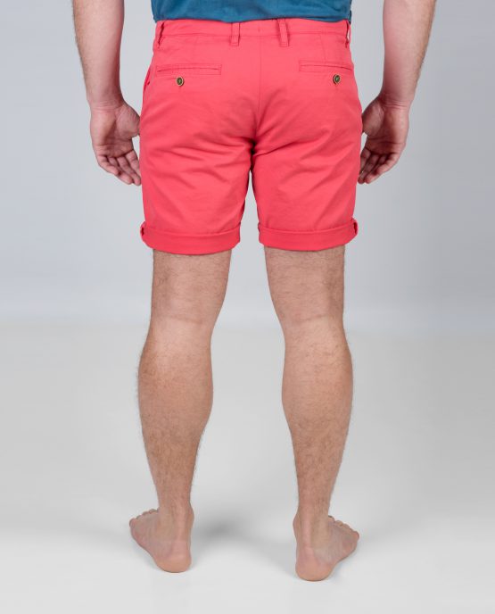 Un short chino rouge tomate à la coupe slim, et au toucher doux.